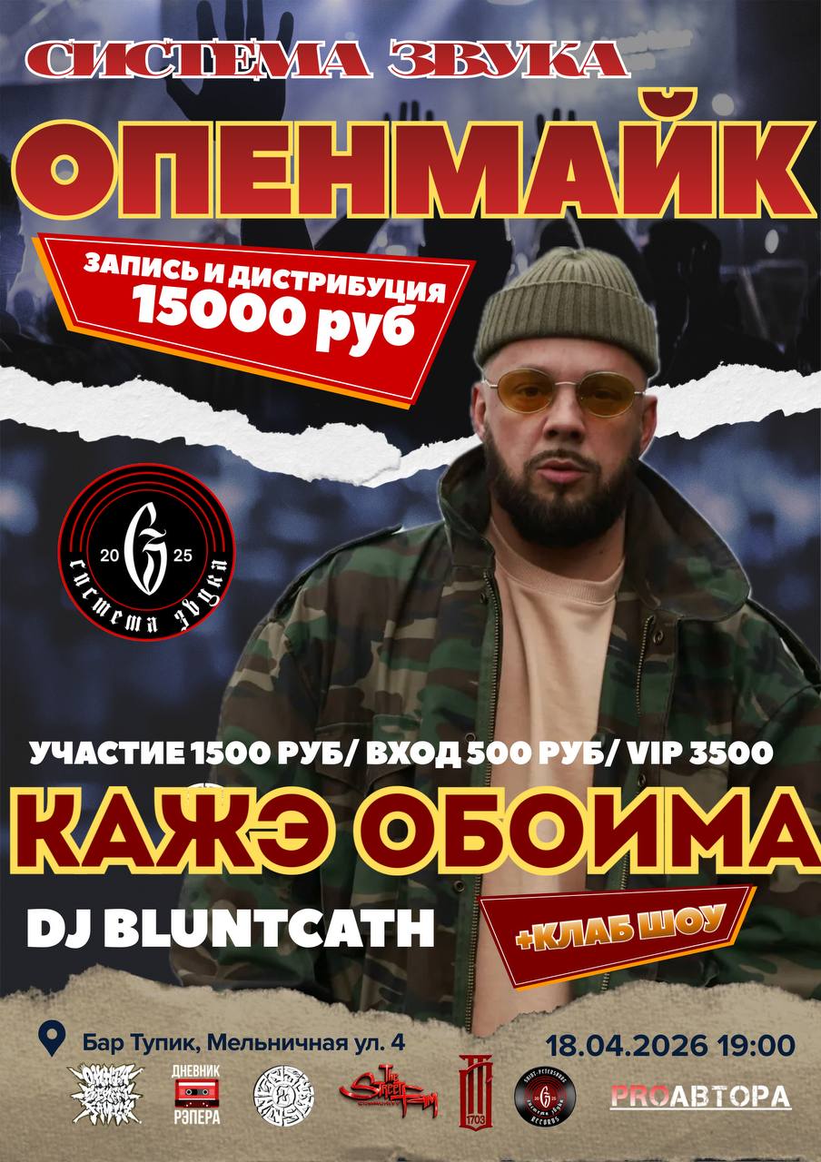 🎤 Формат: Open Mic с призовыми местами, подарками всем гостям и участникам, лайвами и плотной андеграунд атмосферой. 💰 Призовой фонд — 15 000 ₽ И это только начало: — 🎧 Запись и релиз трека на новой студии “Системы Звука” — ♾️ Пожизненные скидки на услуги продюсерского центра — 🎪 Выступления на наших мероприятиях — 🚀 Шанс стать артистом лейбла Система Звука 👑 Хедлайнер и главный судья — Каже Обойма Живое выступление + честная оценка каждого участника. 🎚 За вертушками — DJ BluntCath 🔥 На сцене также: — артисты Системы Звука — Дед Мороз — StreetFam Community — Okhta Street Fam — Secret Guests 🎟 Условия участия: — Участник Open Mic — 1500 ₽ — Вход — 500 ₽ — VIP-стол с правом голосования — 3500 ₽